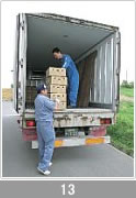 - 13.箱詰めされた椎茸は専用トラックで市場に運ばれます。